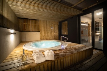 Po náročném dni v přírodě, či jen tak odpočinout s partou kamarádů se skleničkou prosecca v ruce. Nově jsme pro vás připravili whirlpool na venkovní terase u sauny.